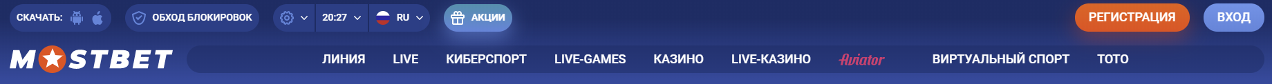 Основные кнопки «Регистрация» и «Вход» находятся в правом верхнем углу. После авторизации открывается доступ ко всем сервисам: спортивные ставки, онлайн-казино Mostbet играть в слоты и live-игры, участие в турнирах и использование бонусных предложений.