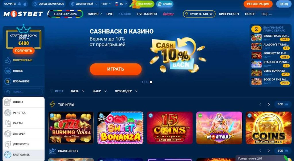 Раздел «Казино» на официальном сайте Mostbet создан для тех, кто хочет разнообразить игровой процесс и помимо спортивных ставок испытать удачу в азартных развлечениях. Здесь собраны десятки категорий игр, начиная от классических автоматов и заканчивая новейшими 3D-слотами.
